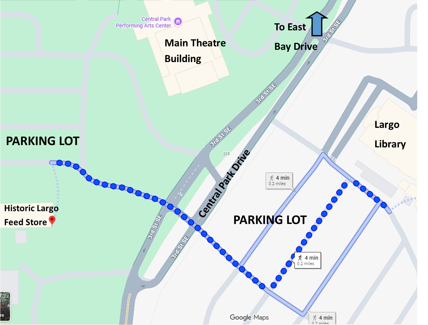 Parking is limited due to events in the theatre and the park, so plan to leave early. Additional parking is available at the Largo library on the other side of Central Park Drive.
